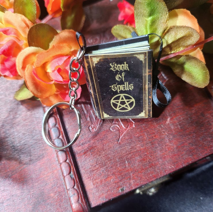 Handmade miniature grimoirespell book keyring brings a touch of magic to your space. Perfect for yourself or as a unique gift.