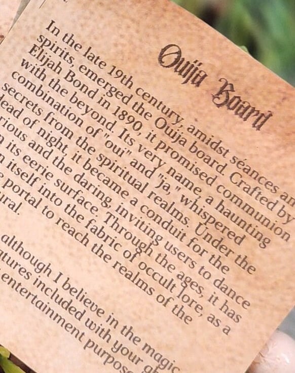 Handmade ouija board, planchet, book of the dead and poison bottle brings a touch of dark magic to your space. Perfect for yourself or as a unique gift, a magical blend of spectral charm and spooky magical energy.