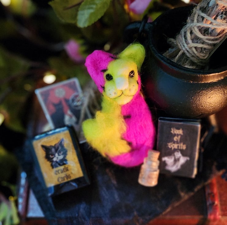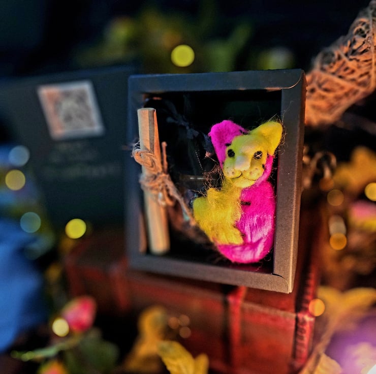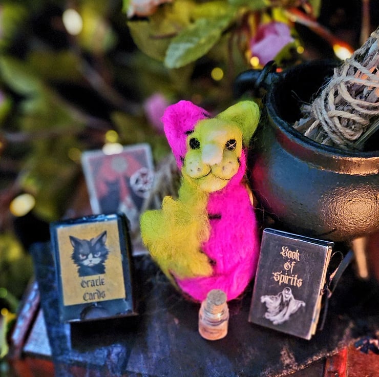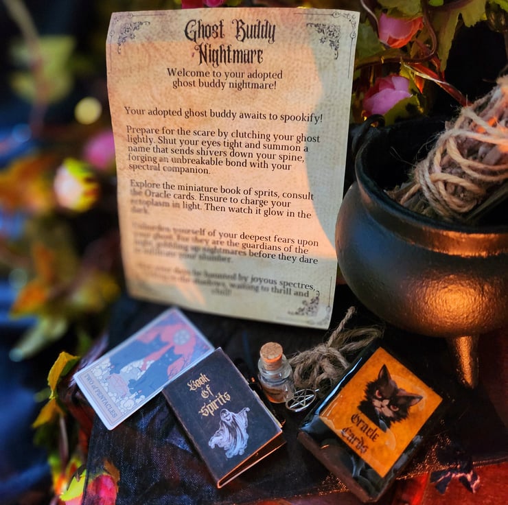 Each ghost buddy nightmare, paired with handmade 8 deck oracle card, book of spirits and glow in the dark ectoplasm bottle brings a touch of nightmare magic to your space. Perfect for yourself or as a unique gift, a spooky blend of spectral scare and magical energy.