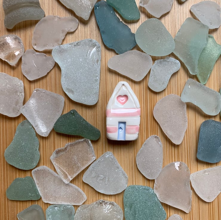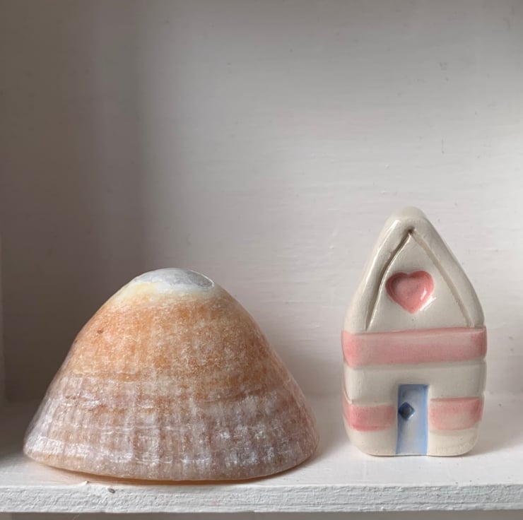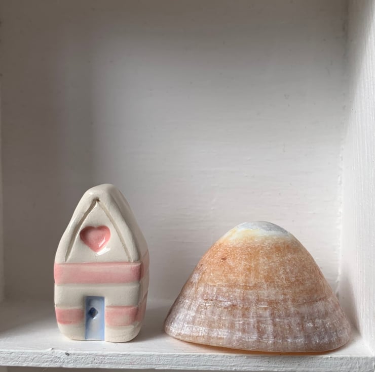 Handmade Ceramic Pink Heart Beach Hut.