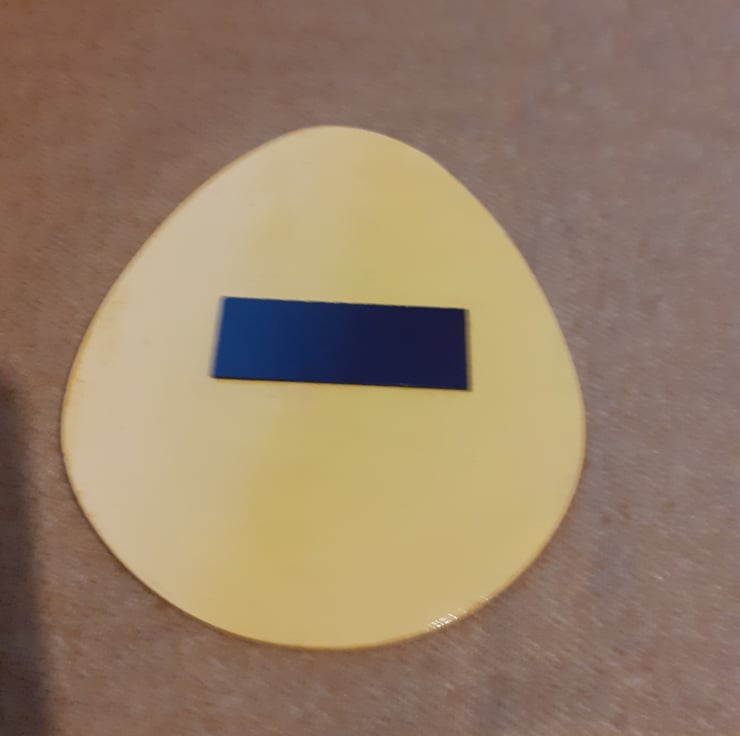 It is approximately 9.5cm x 8 cm and 3mm thick.