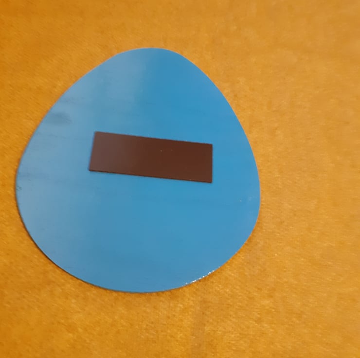 It is approximately 9.5cm x 8 cm and 3mm thick.