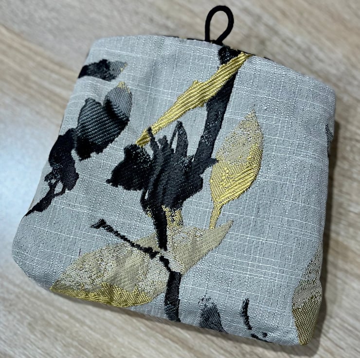 It has been made from a curtain sample which I found on my travels. As I buy my fabrics as and when I see them, I’m not always certain of the exact fibre content.
