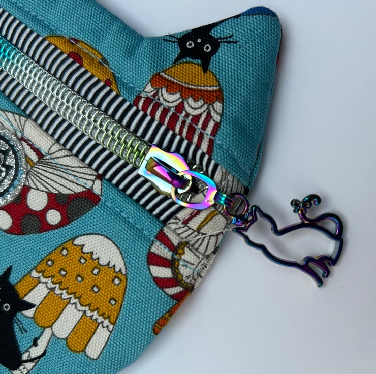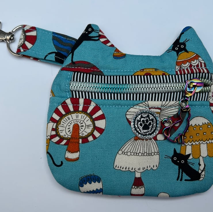 Fully lined with cat shaped zip pull on a coloured zip