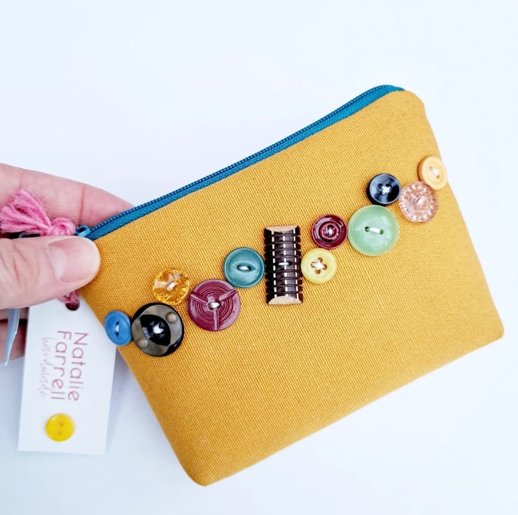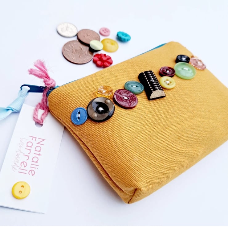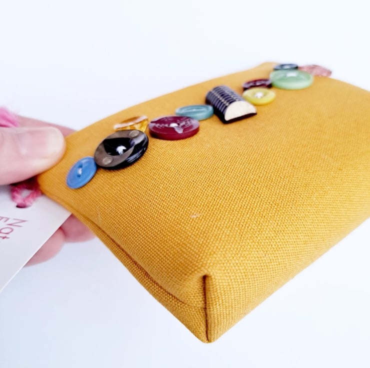 Handmade vintage button canvas purse. Perfect for your coins, notes and cards.