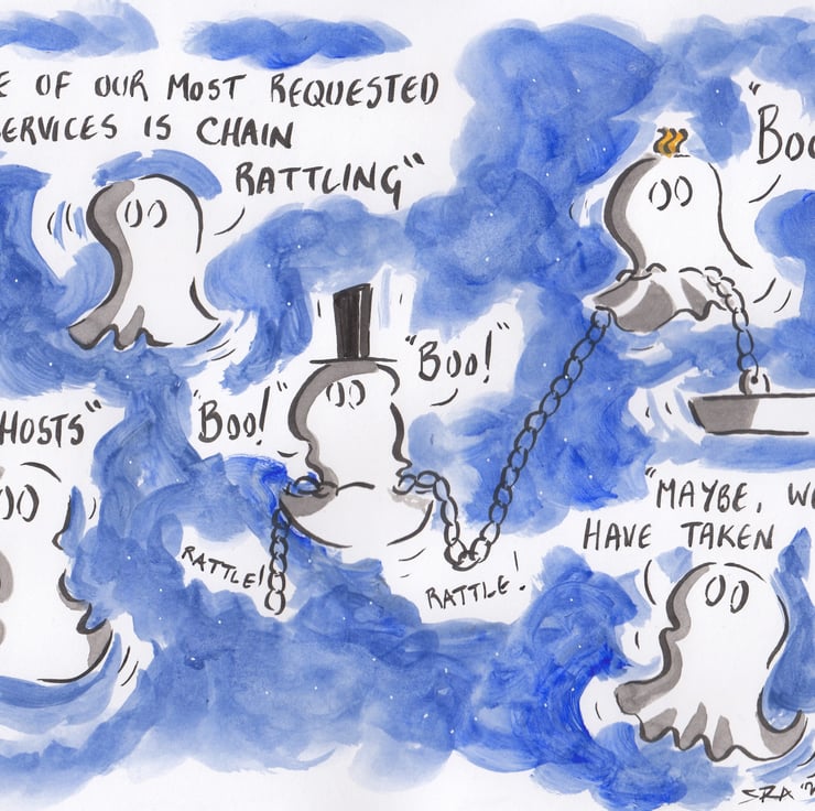 I just like the idea of tiny ghosts and what they get up to. They take haunting very seriously but there are size associated problems.