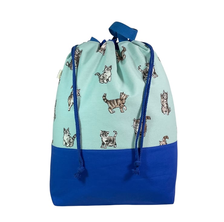 XXL drawstring knitting bag with Cat print, supersized multi pockets