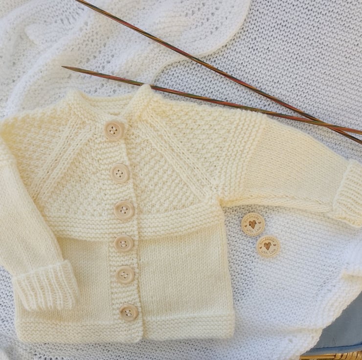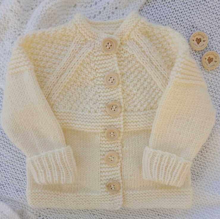Beautiful Baby Cardigan Hand Knitted in Premium Acrylic Yarn and Finished with Wooden Buttons