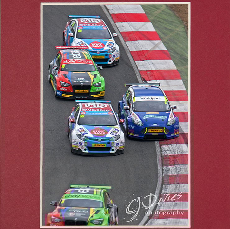 Touring car racing on Paddock Hill at Brands Hatch, Kent.