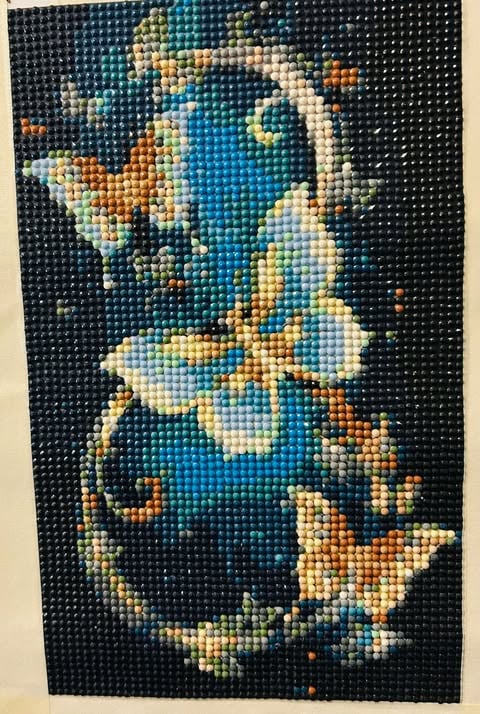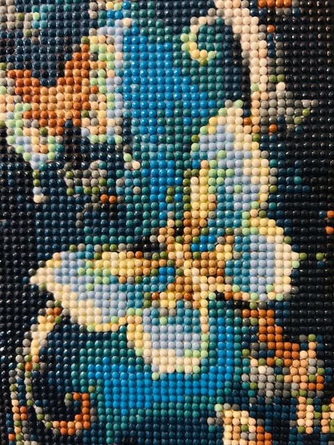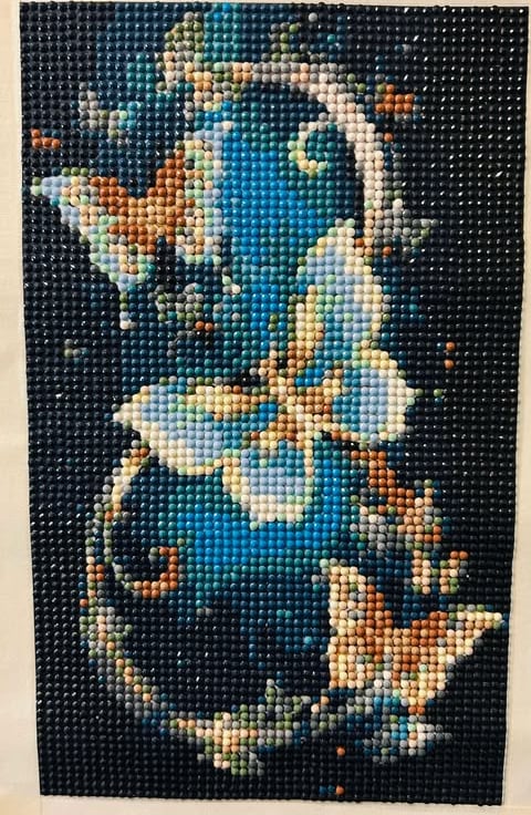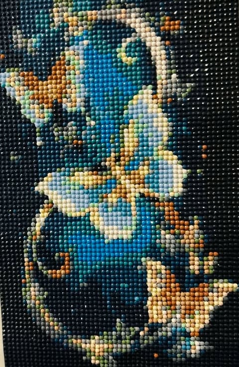 I worked on this amazing Diamond Art Painting ” Blue Butterflies” for up to 25 hours. There are 6.000 gems in this picture which are manually placed, one by one with care and meticulousness. Finished, brushed, and sealed to guarantee stability and shine, to avoid gemstones falling out.