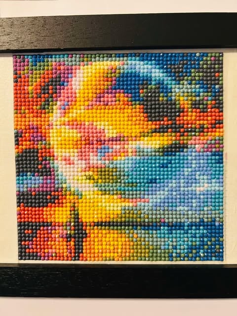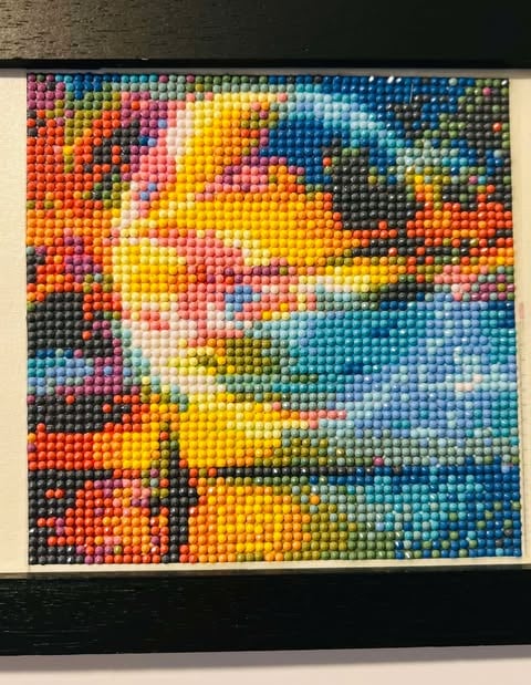 I worked on this amazing Diamond Art Painting ” Moon and Lake” for up to 5 hours. There are 3.600 gems in this picture which are manually placed, one by one with care and meticulousness. Finished, brushed, and sealed to guarantee stability and shine, to avoid gemstones falling out.
