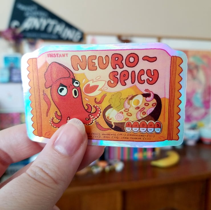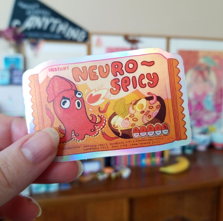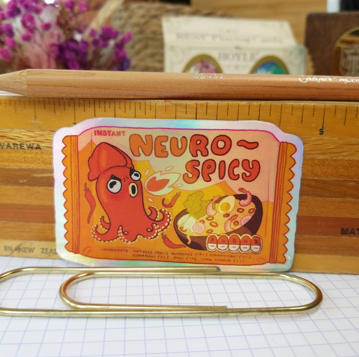 The latest in neurodiverse snack foods; neurospicy instant ramen noodles! Contains 100% of your daily intake of ADHD and autism, with 100% style!