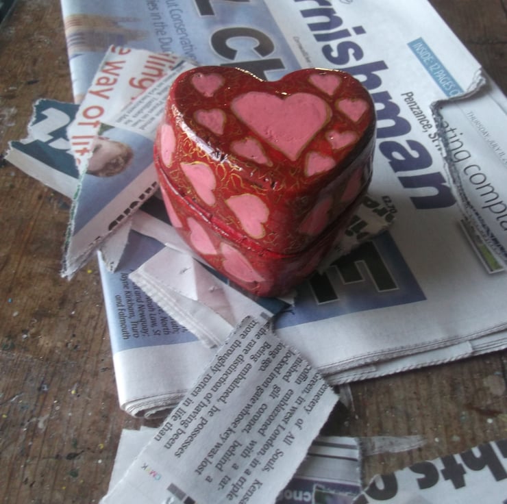 The ultimate in recycled, newspaper, wood pulp and paint. Paper mache has been used for hundreds of years for furniture, internal coving on buildings, trays , boxes and even armour!