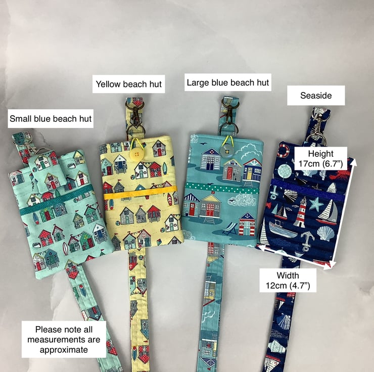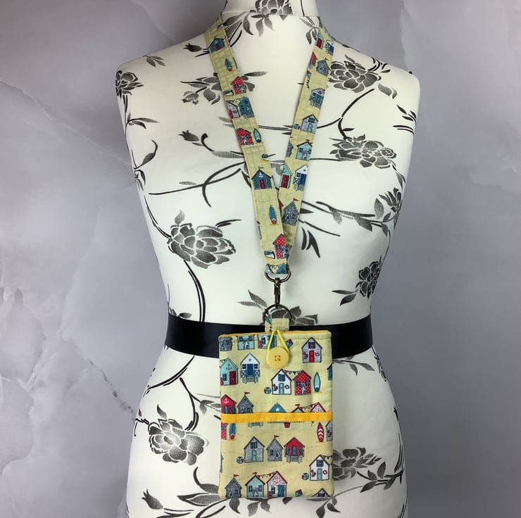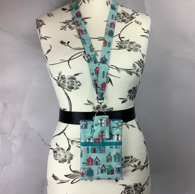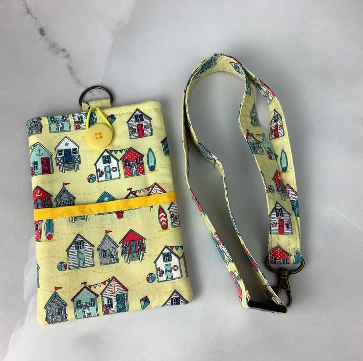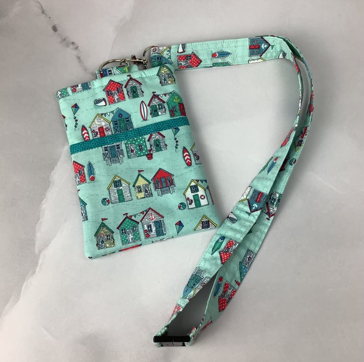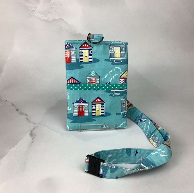 Beach huts neck bag, Seaside phone cover, Travel case, Detachable lanyard, 4 opt