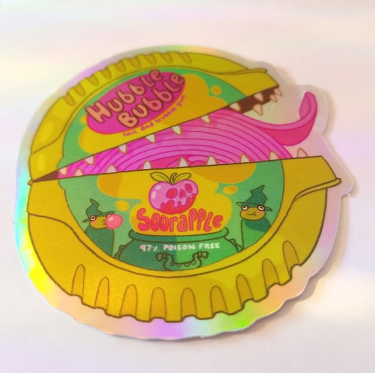 Based on retro 90s / Y2K candy gum tape, and Shakespeare's witches from The Scottish Play (here played by some frogs, but maybe they're Scottish too). Perfect for Halloween!