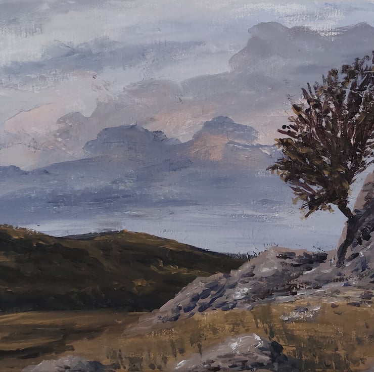 My collection of Scotland paintings try to capture the feeling of timelessness. The landscape there feels so old but also its still changing and growing with rivers carving away at their banks and the growing deer population slowly changing the shrub lands into moorlands.