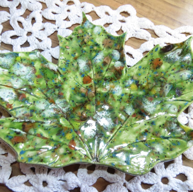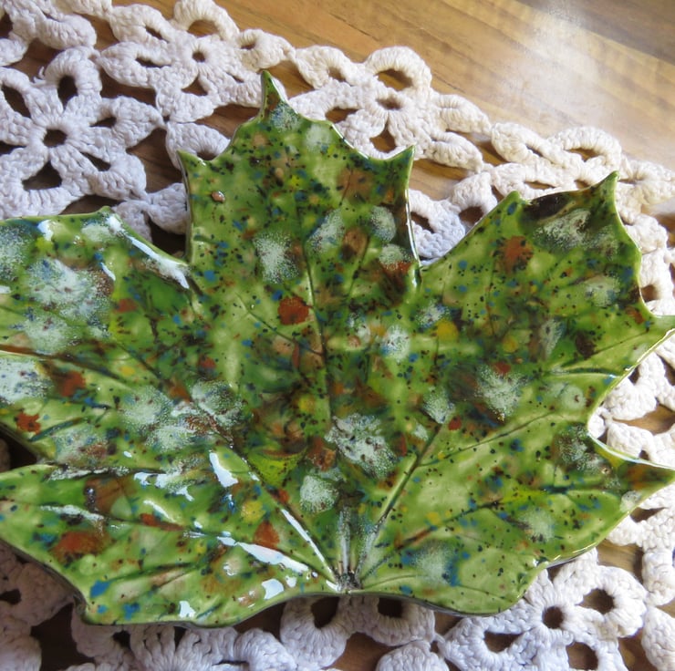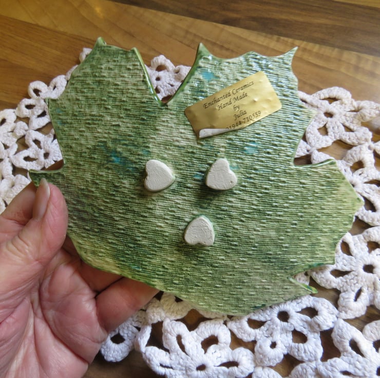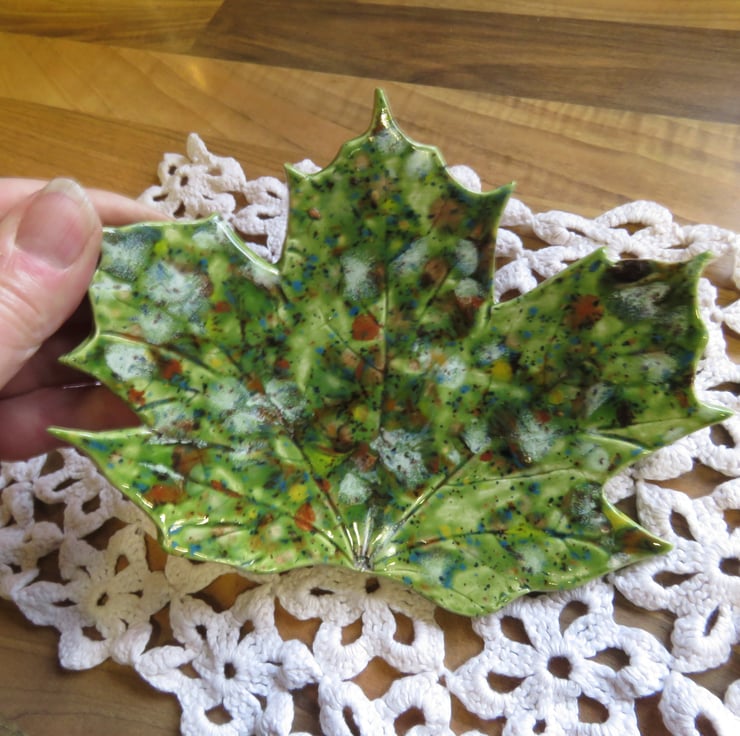 Beautiful sycamore leaf dish. This dish stands on 2 small heart shaped feet. Can be used as a trinket dish, keeping keys safe, soap dish so many uses.