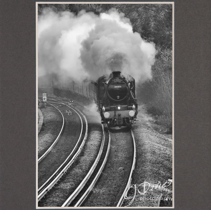 Locomotive 44871 on the "Cathedrals Express" just south of Haslemere, Surrey, December 2018.