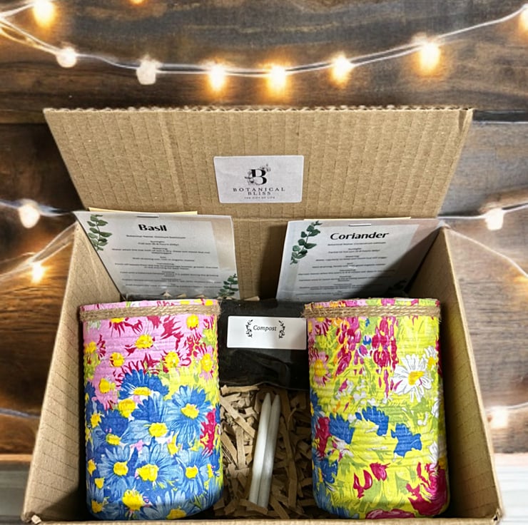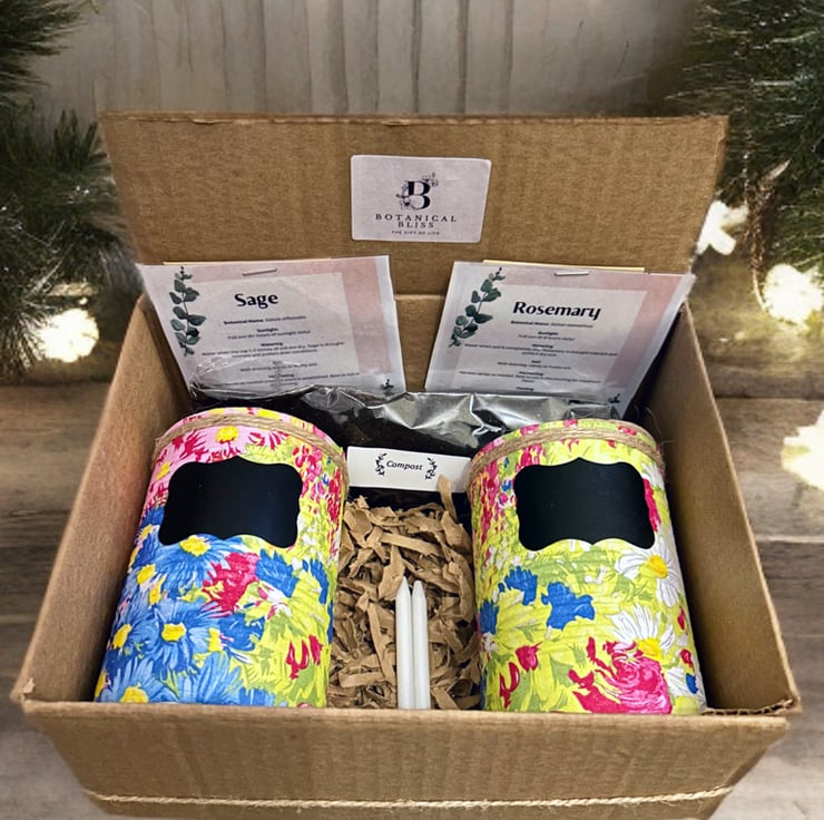 Vibrant Floral Handmade Recycled Eco-Friendly Indoor Kitchen Herb Gift Set
