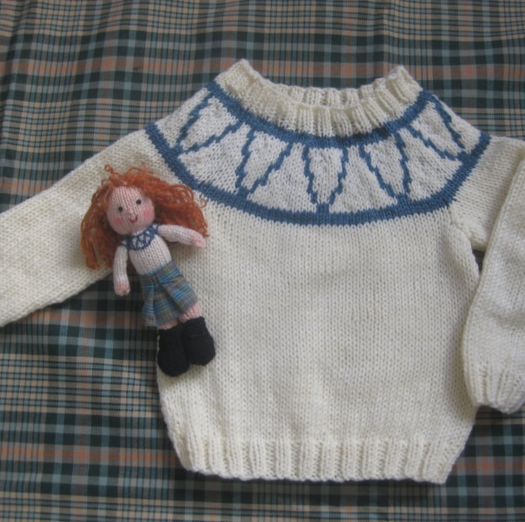 Designed by Kaypee Clothing and inspired by Katie Morag's jumper. It is hand knitted in 100% acrylic aran weight yarn ..