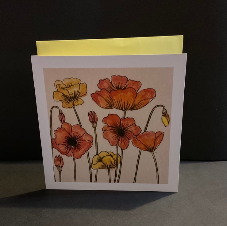 This greetings card is blank inside for your own personal message. A floral design in watercolour and ink .and in bright colours The card would be suitable for a birthday,special occasion,thank you,friend ,or maybe for a keen gardener