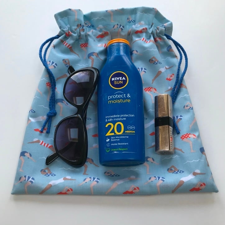 Swimming ladies toiletries bag, Wild swimming gift, Lined drawstring bag.
