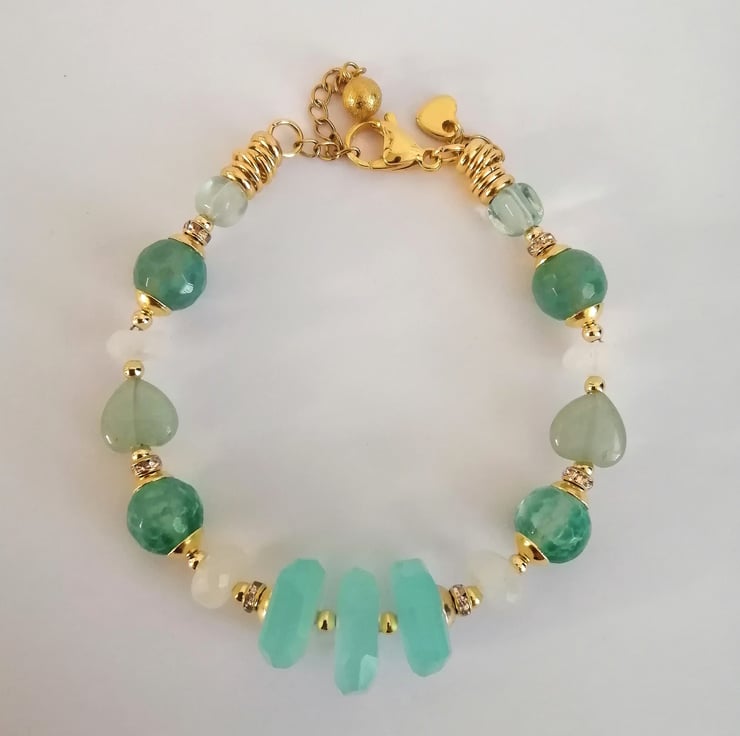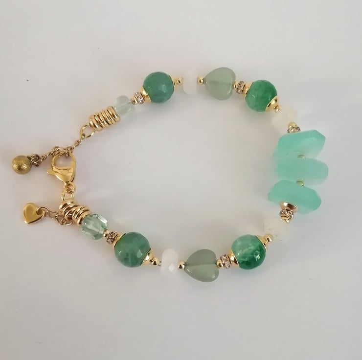 Green bracelet green aventurine valentine heart, chalcedony, agate and fluorite.