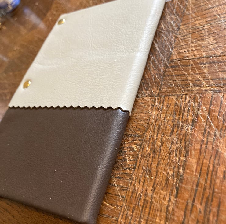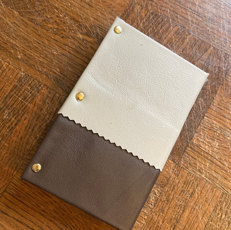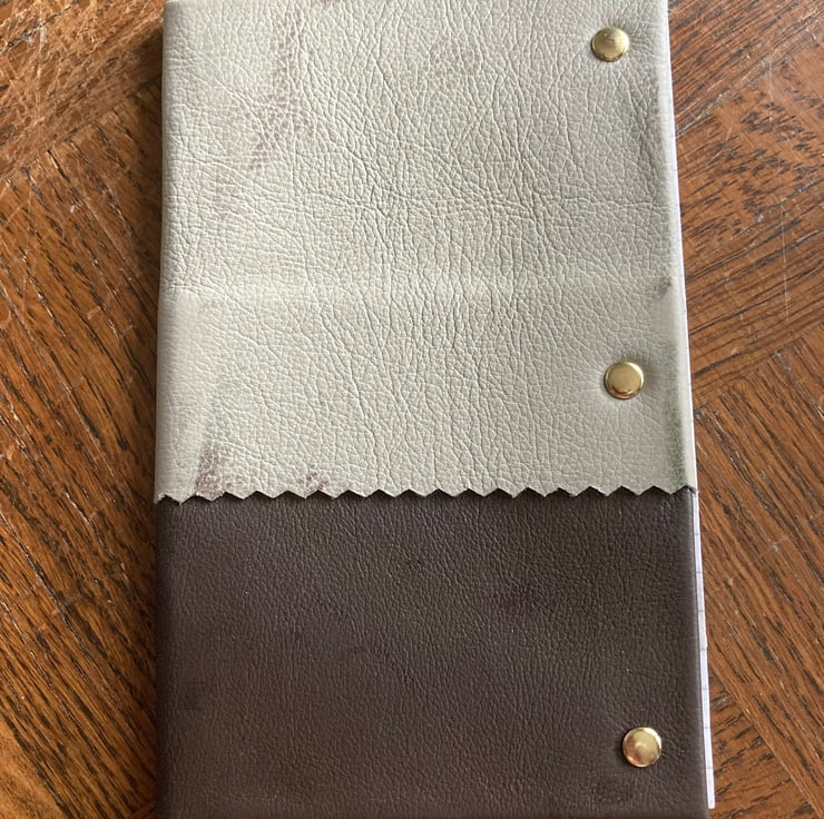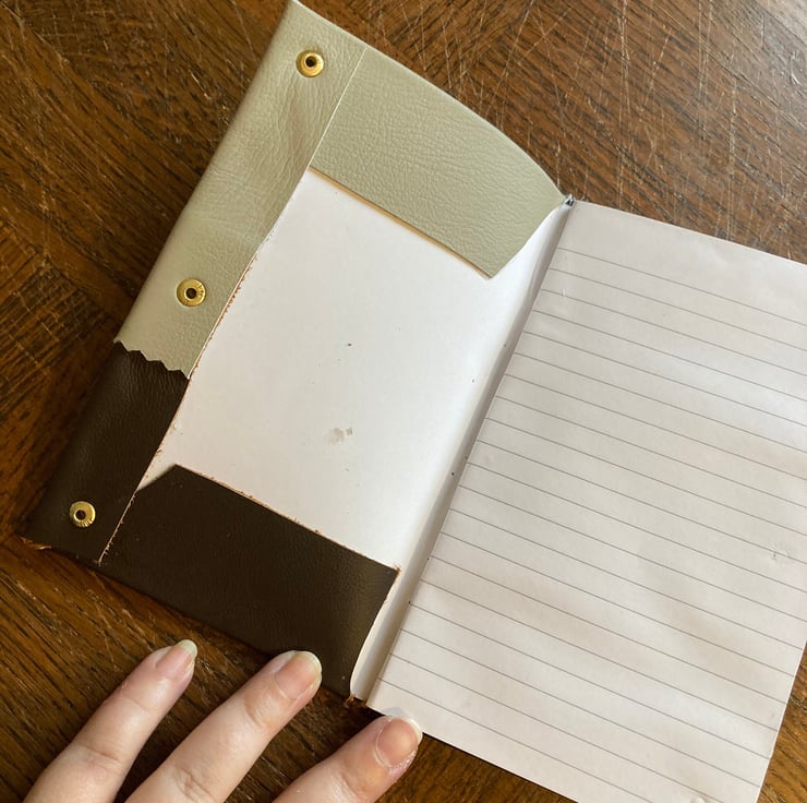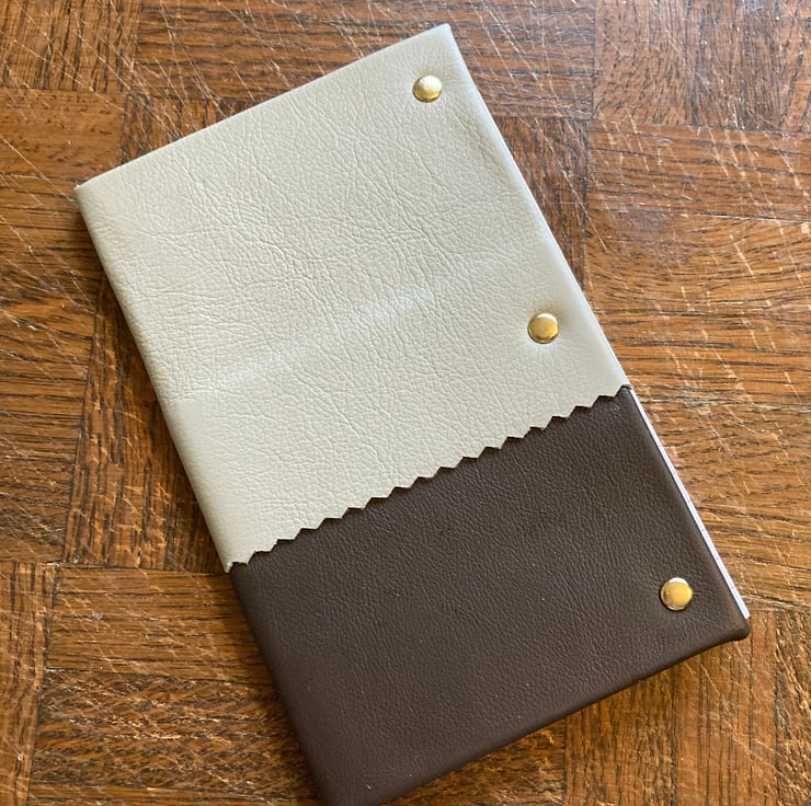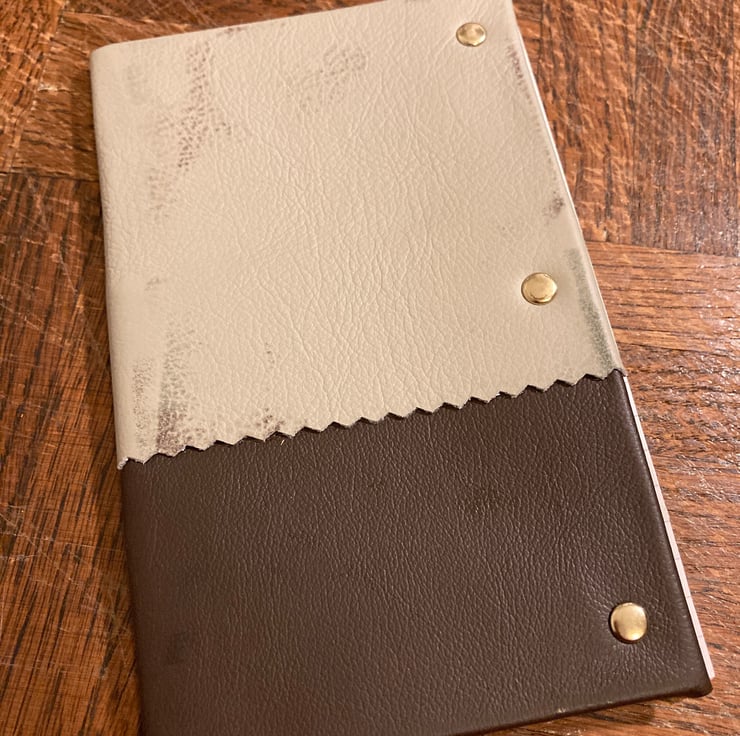 2 tone light and dark brown coloured leather bound A6 (ish) sized notebook (36 pages of lined paper inside)