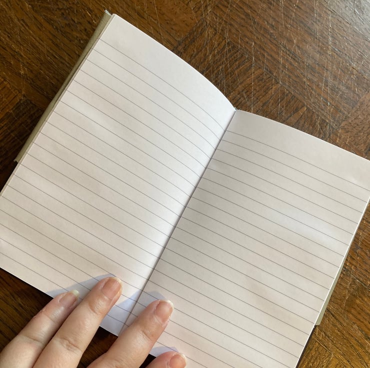 This notebook is just slightly larger than an A6 size with dimensions of 3.75 X 6.5 inches, but still small enough to fit into your pocket or a small bag for all your notetaking needs.