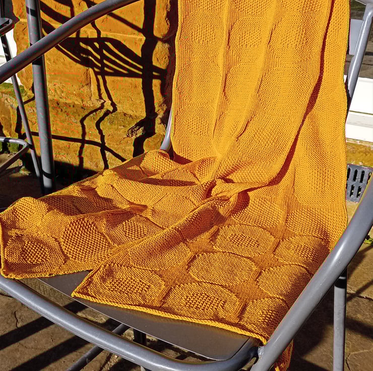 I have always liked geometric shapes in simple formations in simple knit stitches. I hope you like this design too