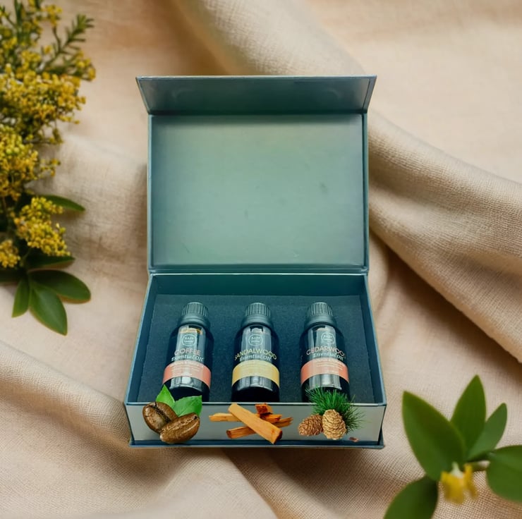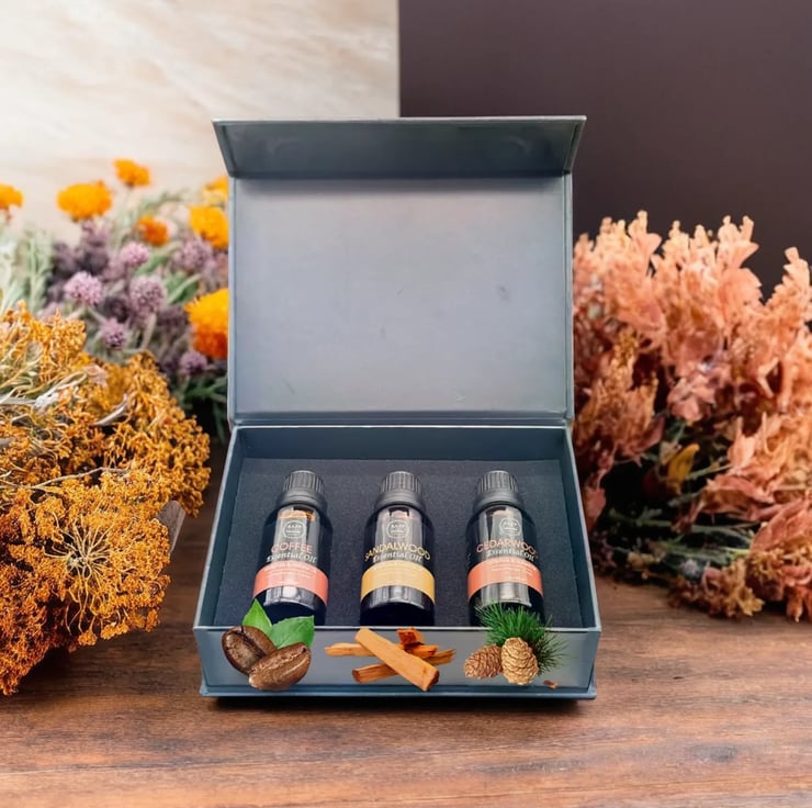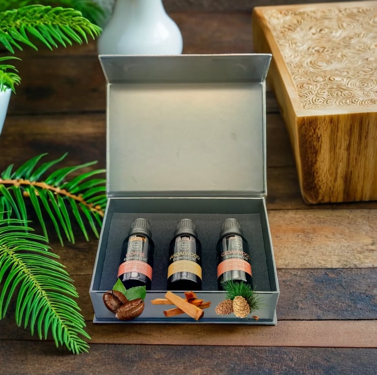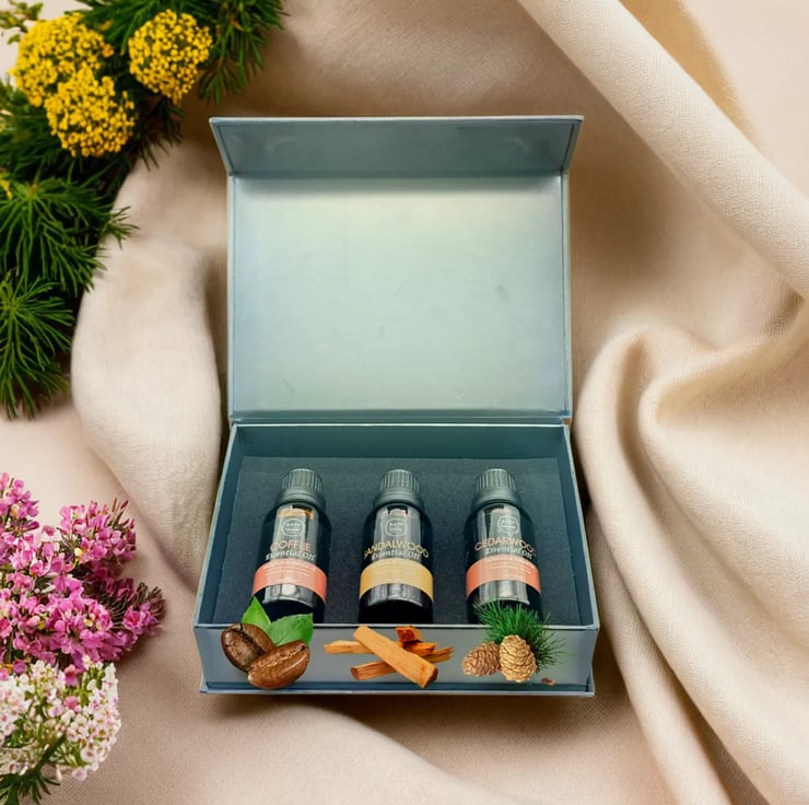 Cedarwood Essential Oil: Calms the mind, reduces stress, and promotes a cozy, tranquil environment.