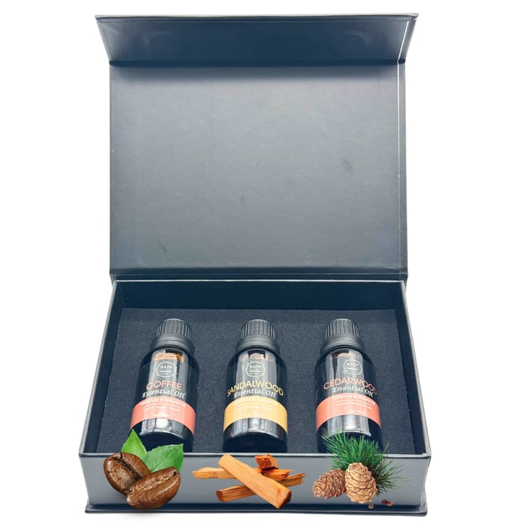 Awaken your senses with the earthy richness of the Baff Candle Collection. Featuring Coffee Essential Oil, Sandalwood Essential Oil, and Cedarwood Essential Oil, this pure and organic trio offers a balanced blend of energizing, grounding, and calming aromas. Perfect for creating a serene yet invigorating atmosphere, these oils are your go-to for ultimate relaxation and focus.