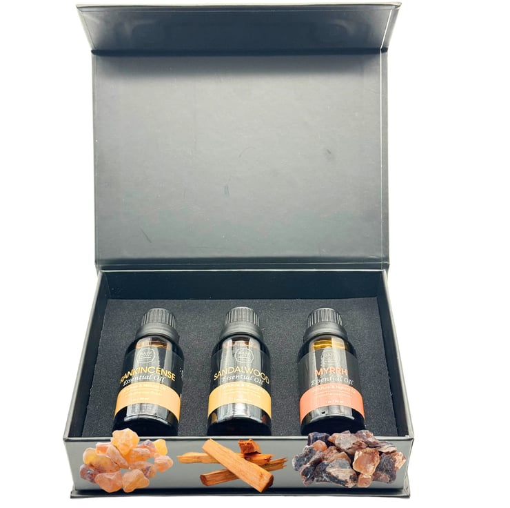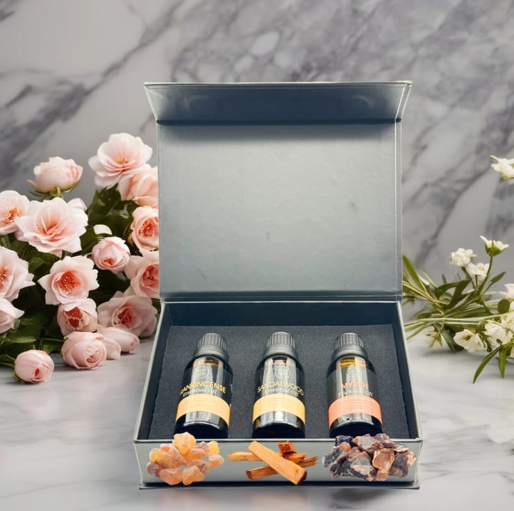 Myrrh Essential Oil: A rich, earthy aroma with grounding properties, perfect for reflection, healing, and creating a serene ambiance.