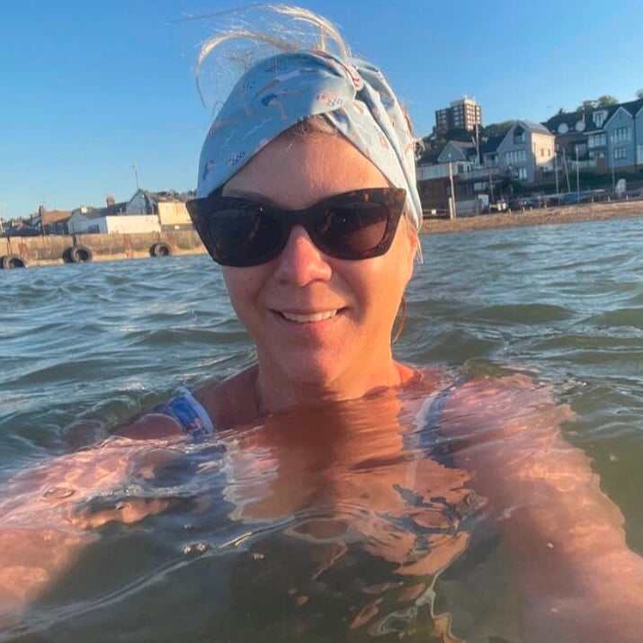 The headband is not designed to be worn while swimming however one of my customer’s sent me a photo of her wearing it and I’ve included it to show how great she looks!