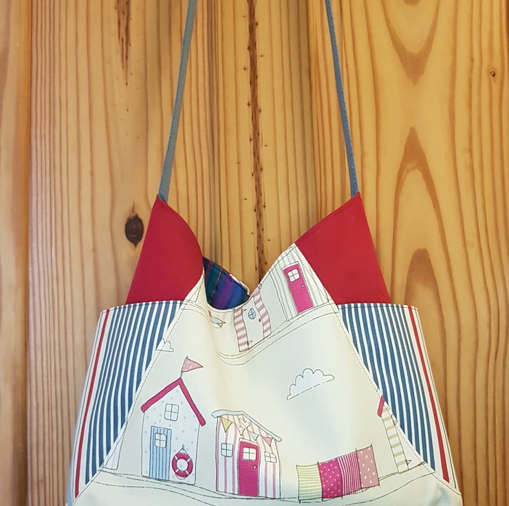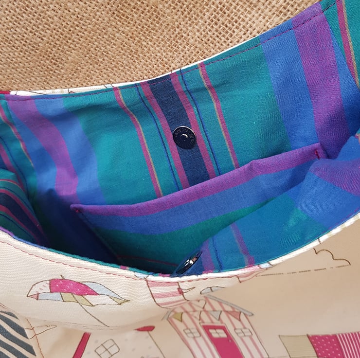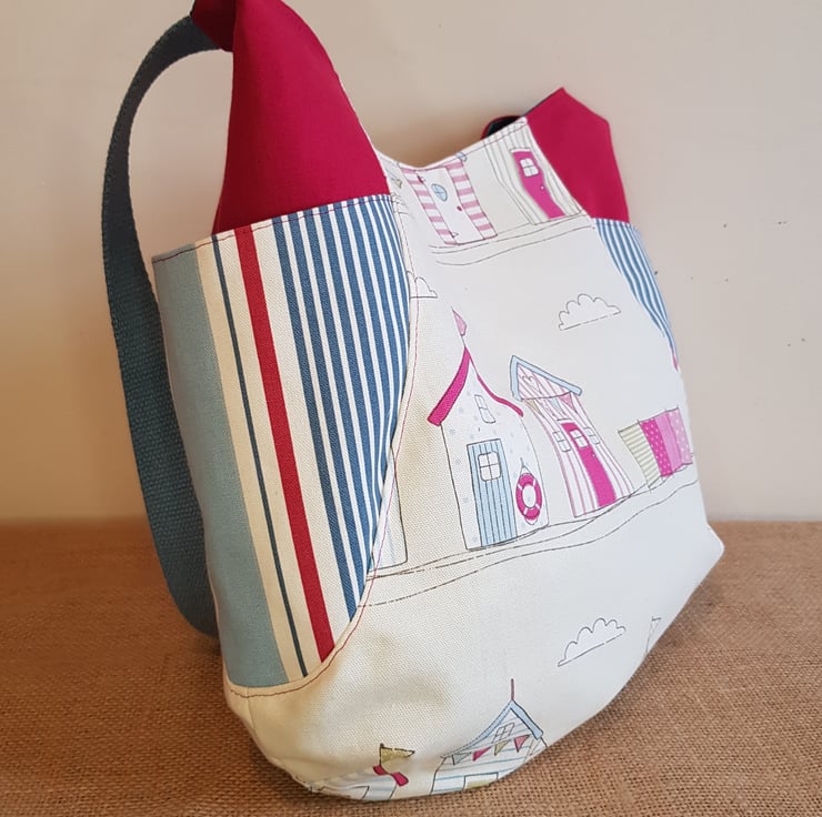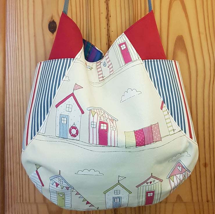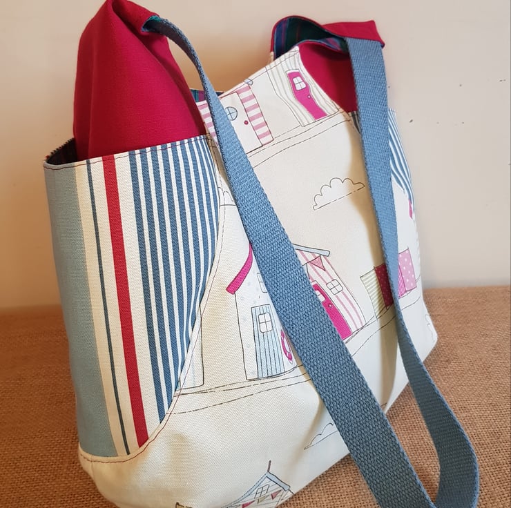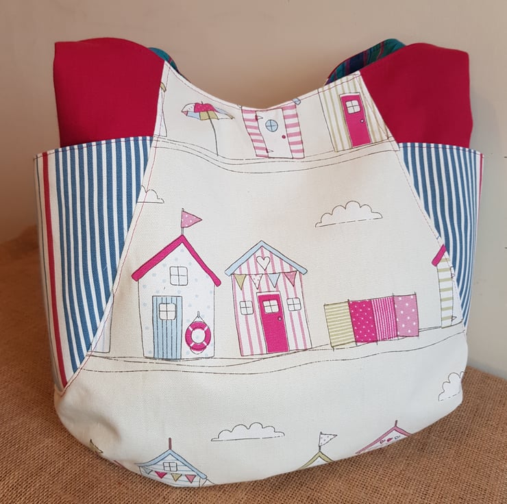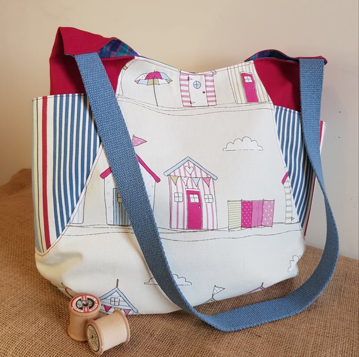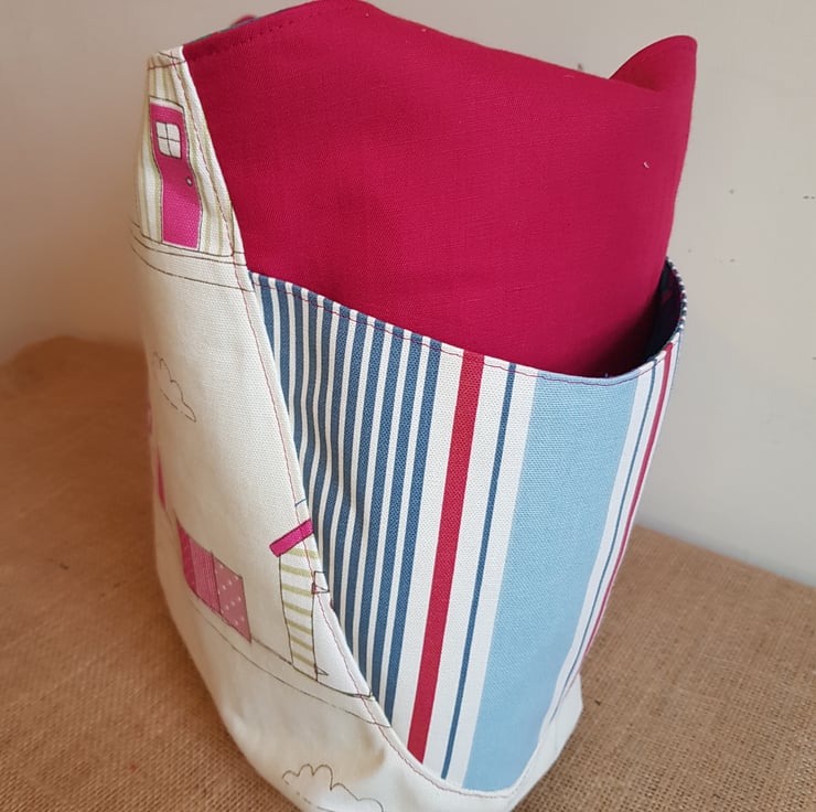 This cheerful and generous tote is made from good quality furnishing fabrics. It has 2 large side pockets and a pocket inside and it is fully lined. It is more detailed and challenging to make than my more simple totes, but it is a pattern I come back to again and again. I love coordinating the fabrics and the generous side pockets.