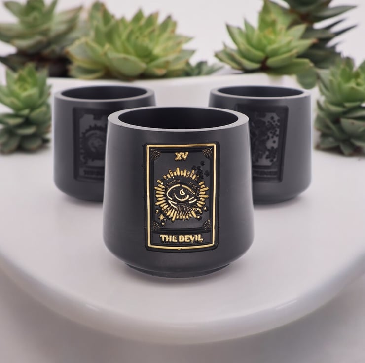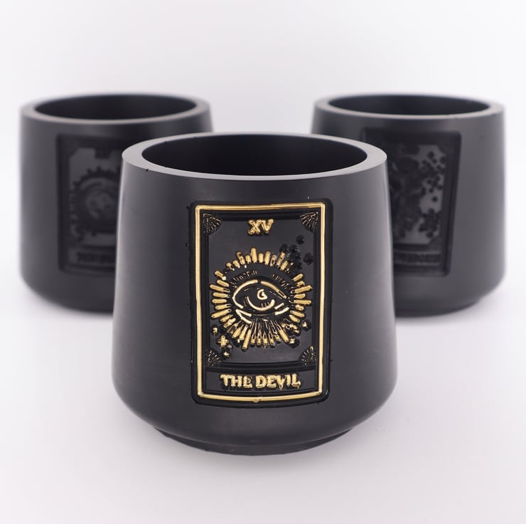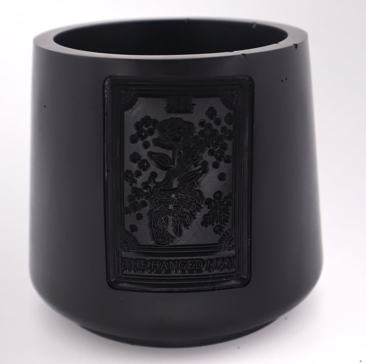 Elevate your greenery with our handcrafted black Jesmonite planter, featuring a unique single tarot card design of your choice.