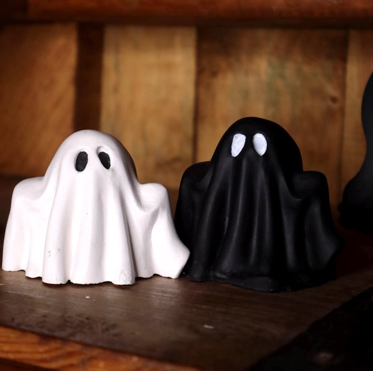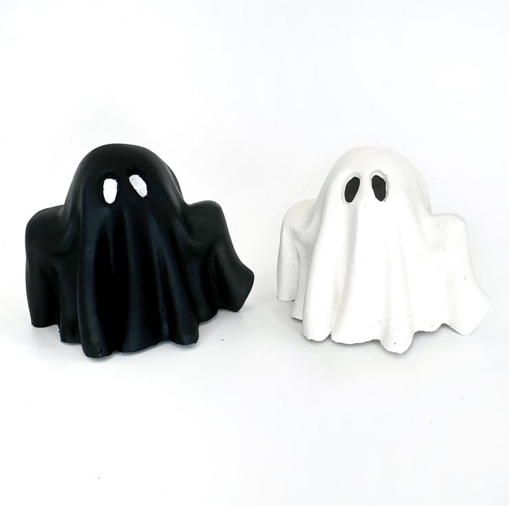 Each ghost is handmade, hand painted and sealed with stone wax for a long lasting sheen and beautiful finish.