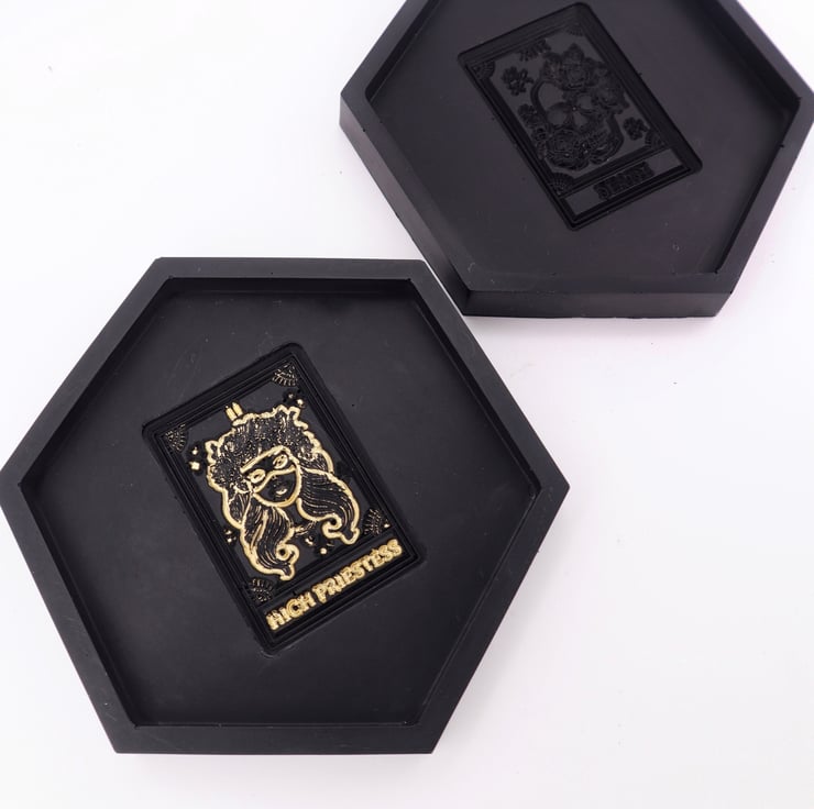 Elevate your home decor with this enchanting hexagon trinket tray. Whether you re a tarot card reader or simply appreciate mystical designs, this tray adds a magical touch to any room. Order yours today and bring a piece of the mystical world into your home!