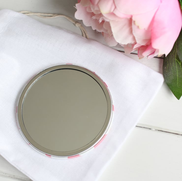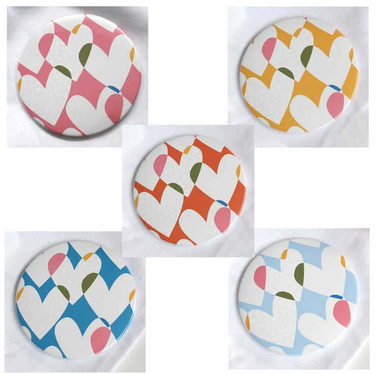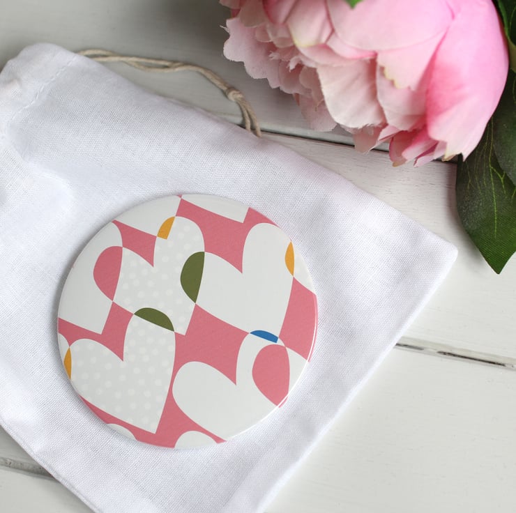 Pink Hearts design handmade extra large cosmetic pocket mirror.