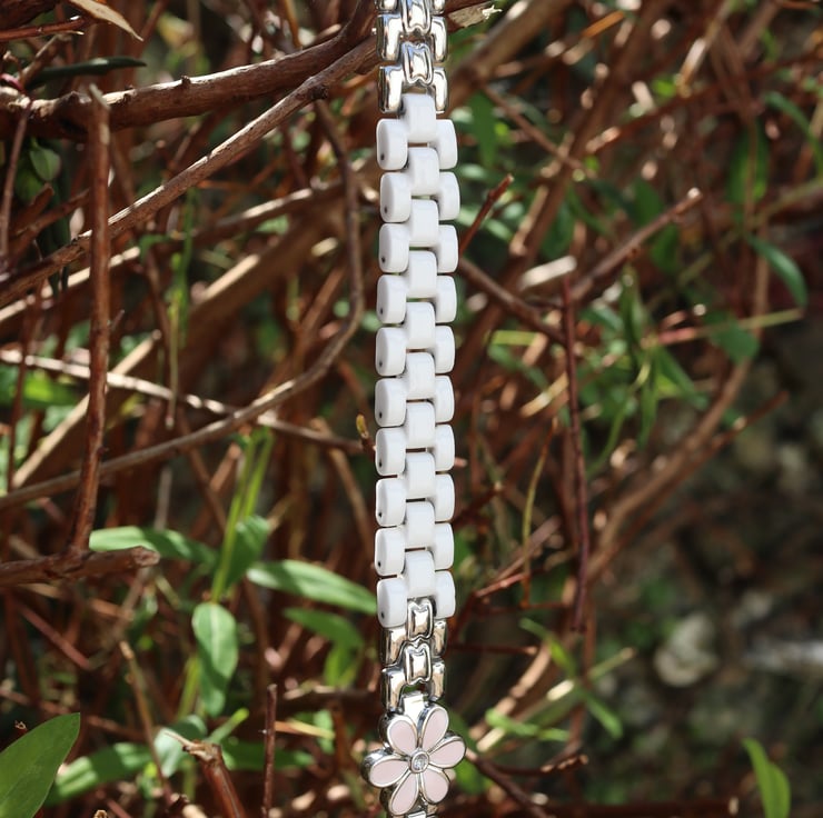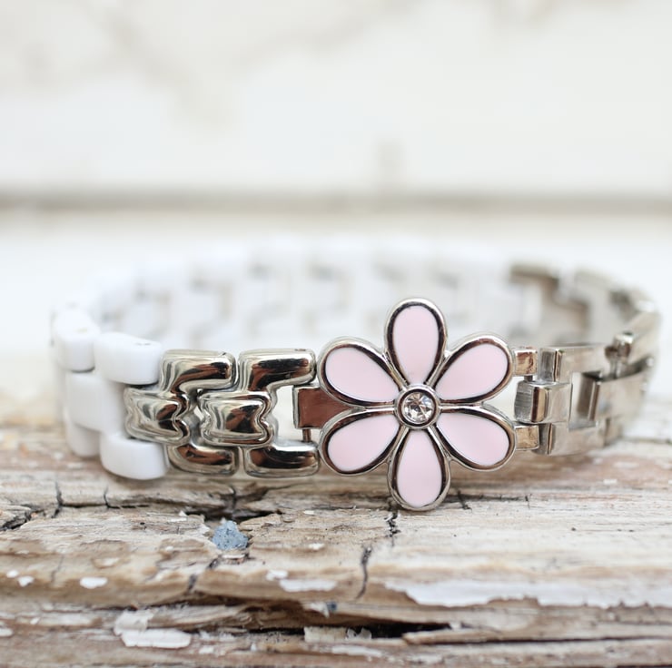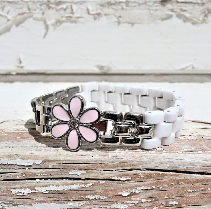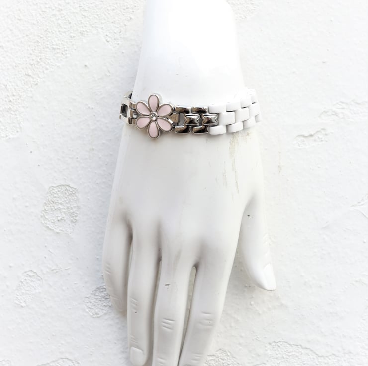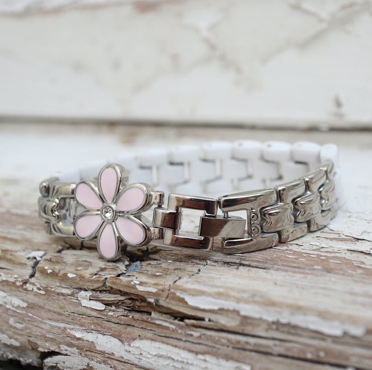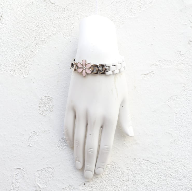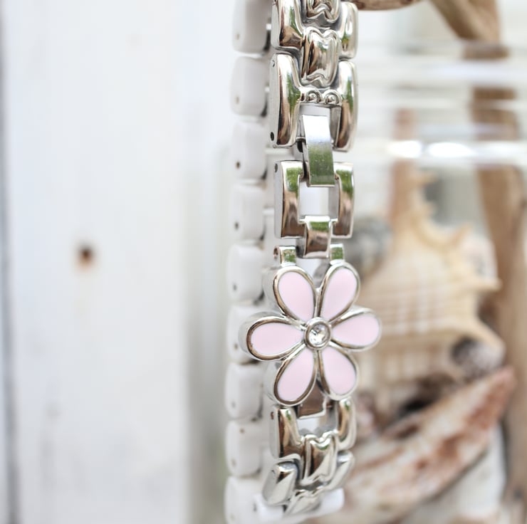 Pretty up-cycled flower charm vintage watch parts bracelet - Gift - Handmade