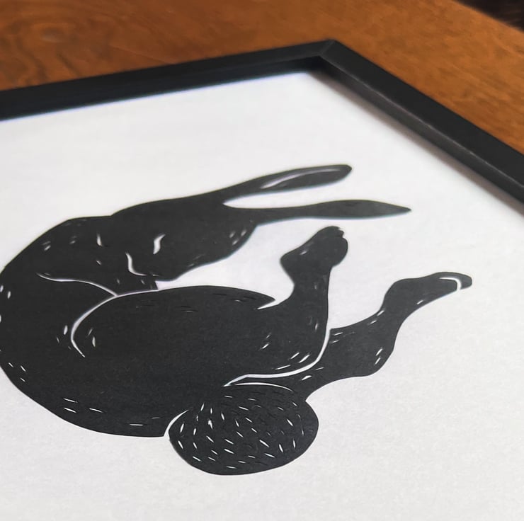 This is a framed original, not a print. It is hand-cut from an original design on 110gsm black paper, then mounted on a pure white-coloured acid-free 140gsm paper. It's safely housed in a complimentary black composite MDF frame with a hardboard backing & glass panel. The metal hardware is already installed, making it ready to hang!