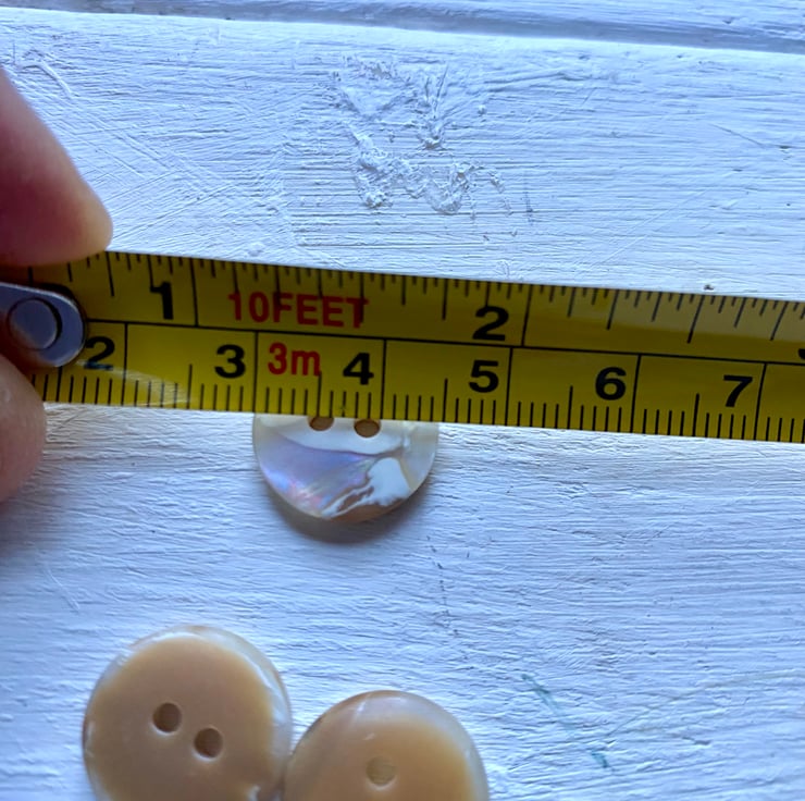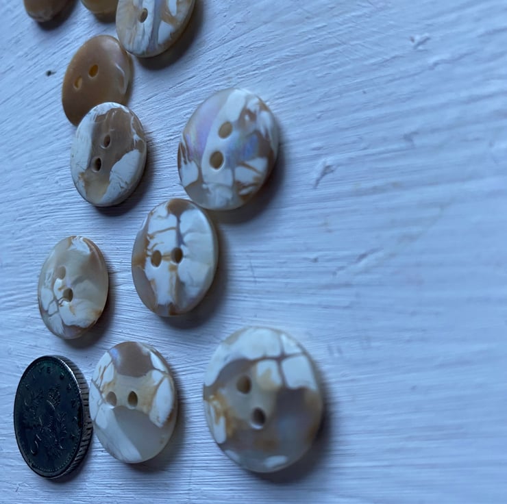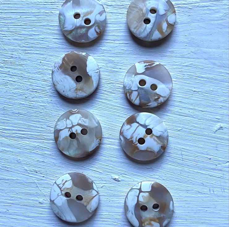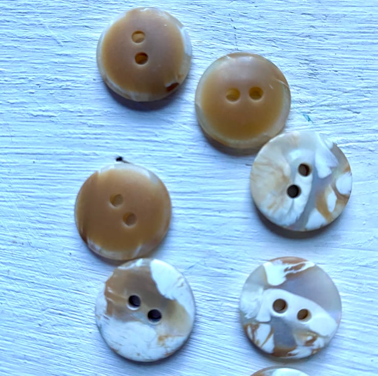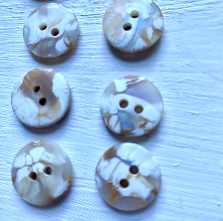 There are 10 buttons in this set. They are a very pretty mix of natural tones. Quite a traditional looking flat button.