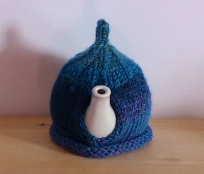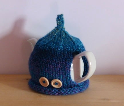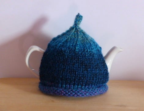 Knitted to fit a standard Two Cup teapot this cosy has a roll rim and plenty of stretch so should fit a variety of small pots.