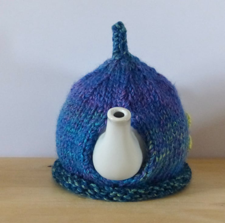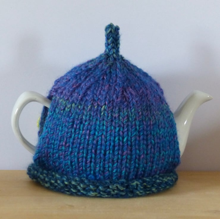 Knitted to fit a standard Two Cup teapot this cosy has a roll rim and plenty of stretch so should fit a variety of small pots.