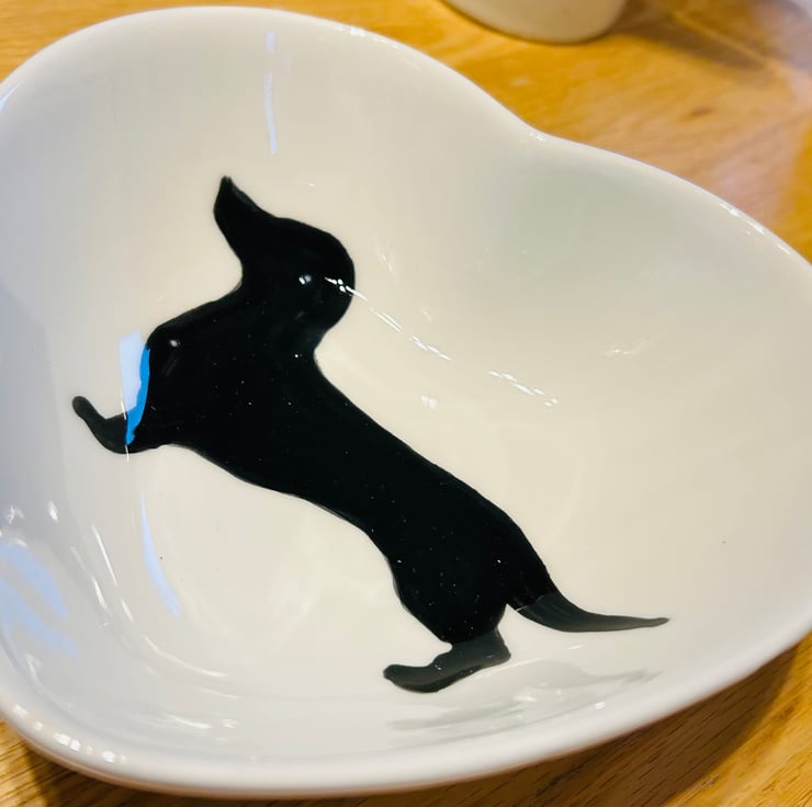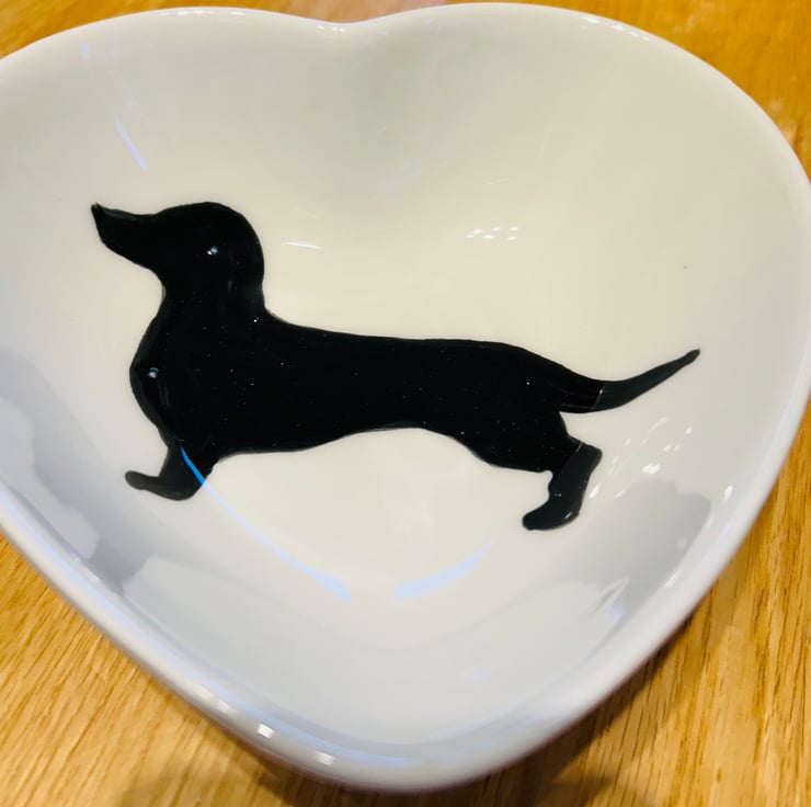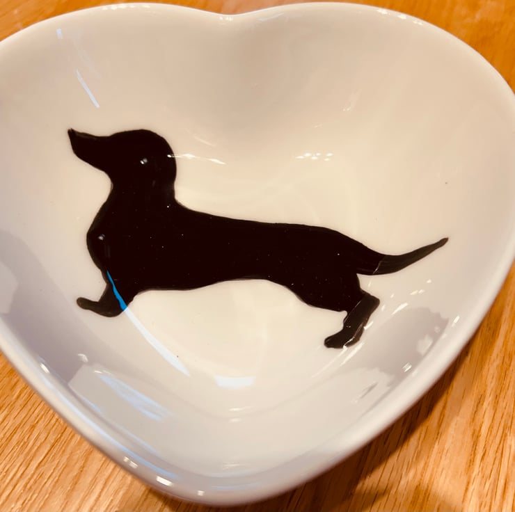 Sweet heart trinket bowl or snacks bowl with the image of a dachshund.
