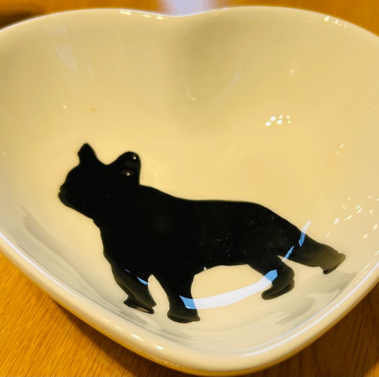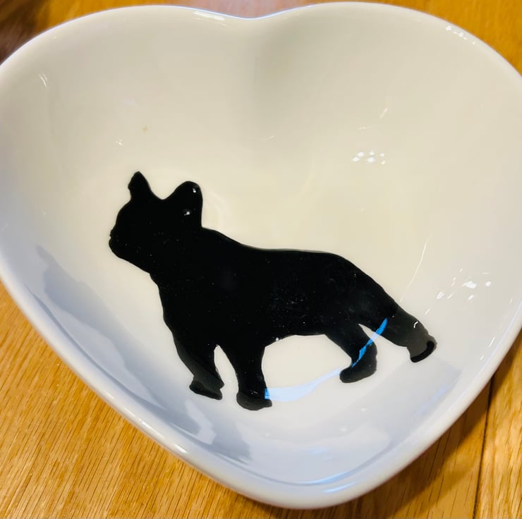 Sweet little trinket or snacks bowl bowl with the image of a Frenchie or French bulldog.