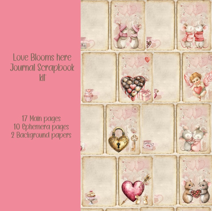 Love Blooms kit Scrapbooking, Ephemera, Journal, Digital Download