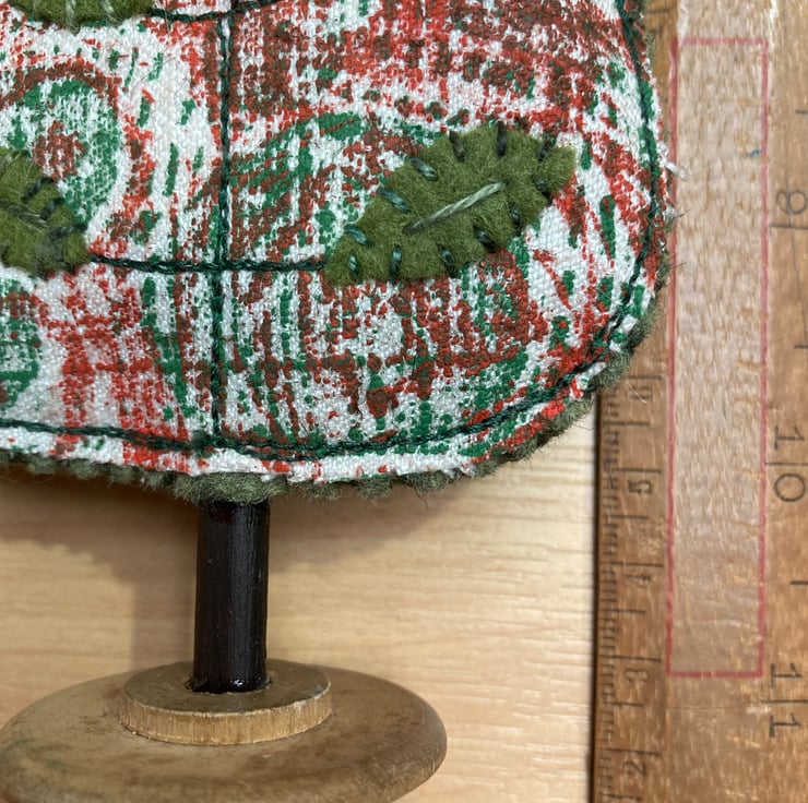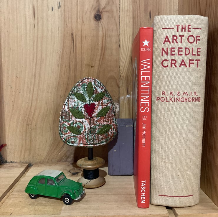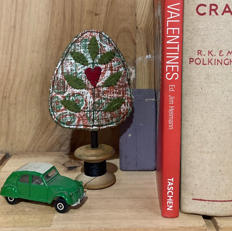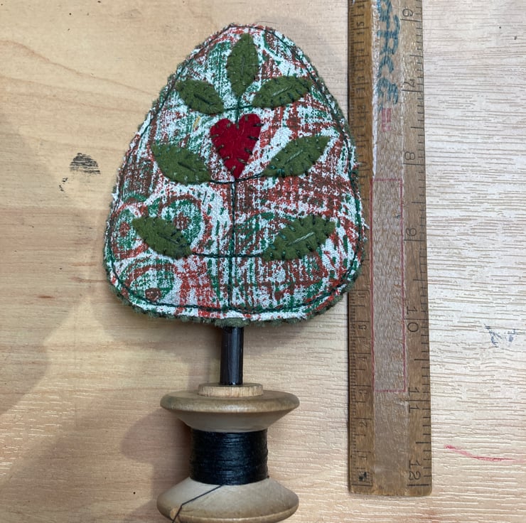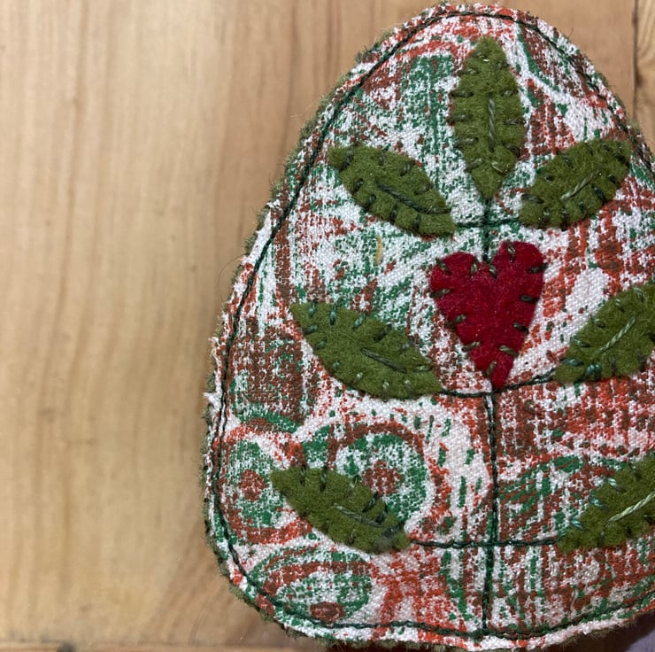 Beautiful printed linen in red and green, with added felt leaves and a little heart.