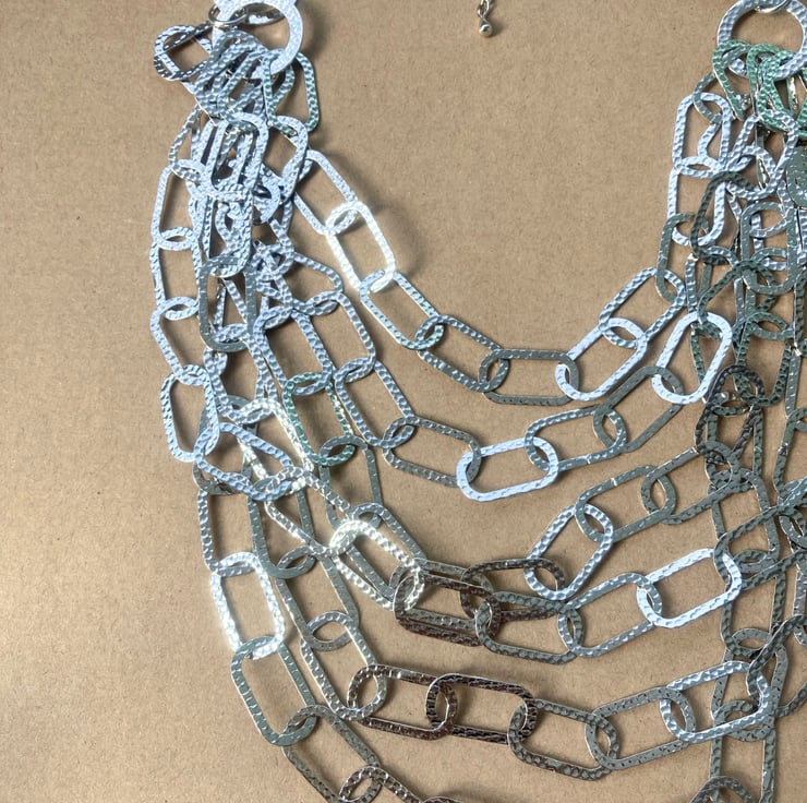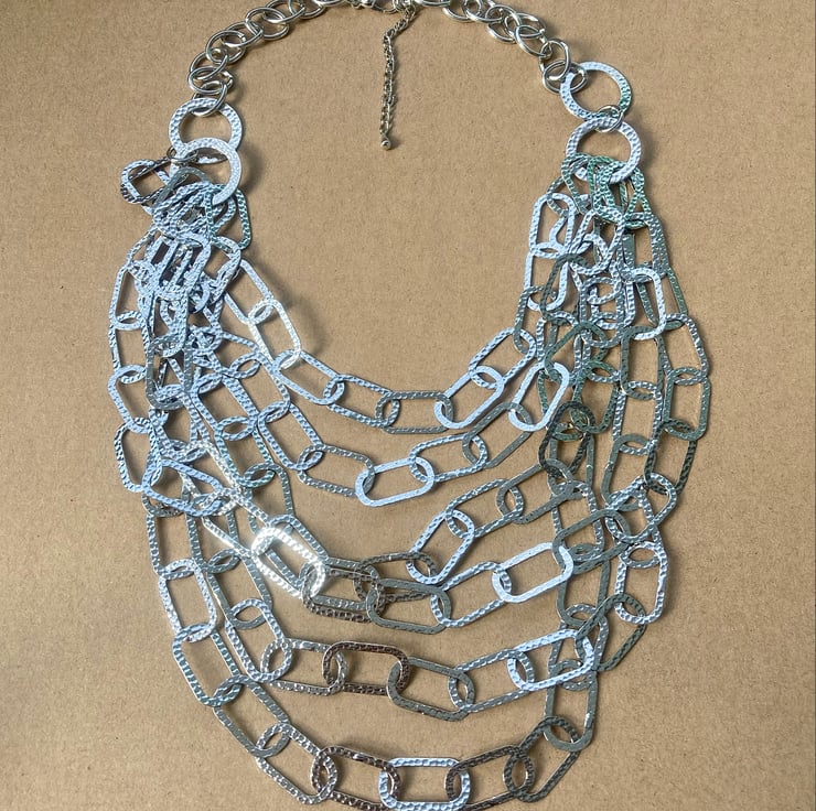 Multi Strand Chunky Statement Upcycled Handmade Necklace - Lightweight Rounded Rectangle Shape Link Chain - Multi layered Chain Necklace - Six Layers Necklace