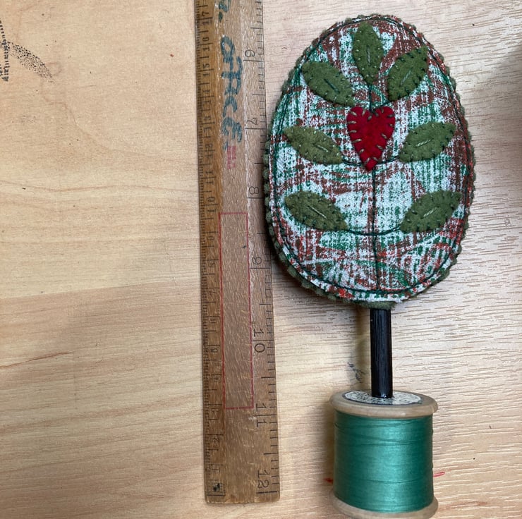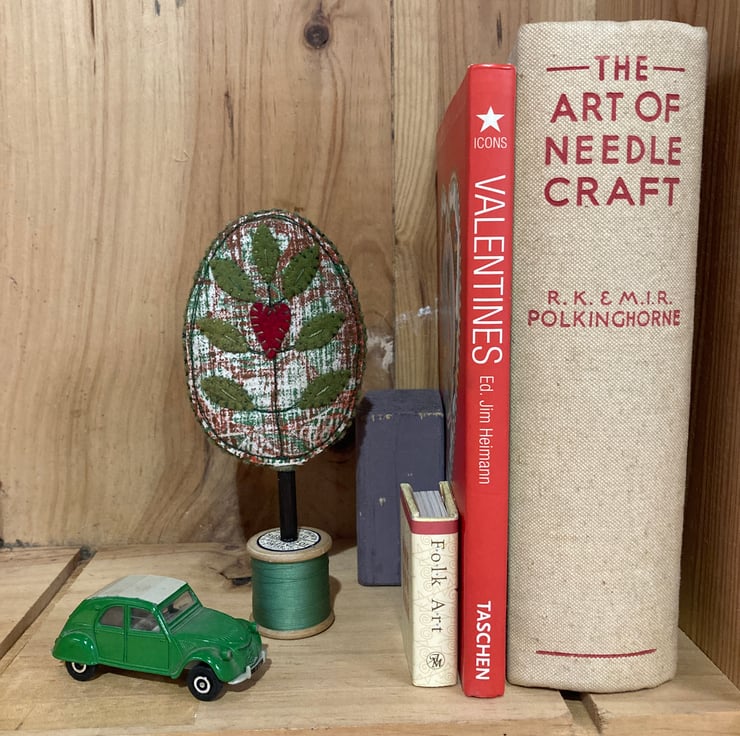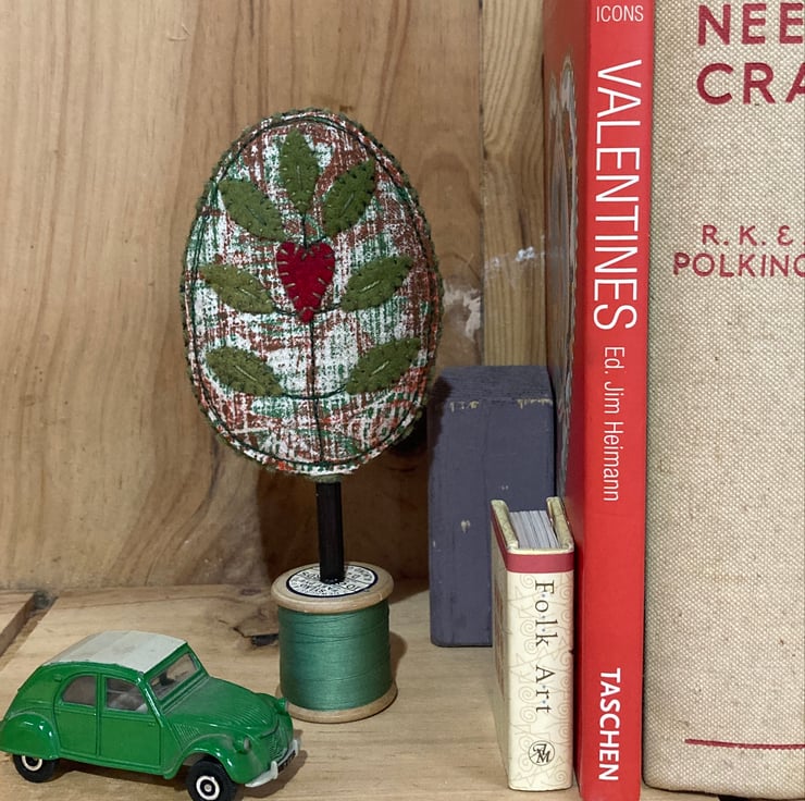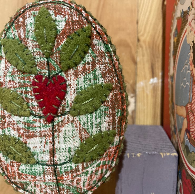 Beautiful printed linen in red and green, with added felt leaves and a little heart.